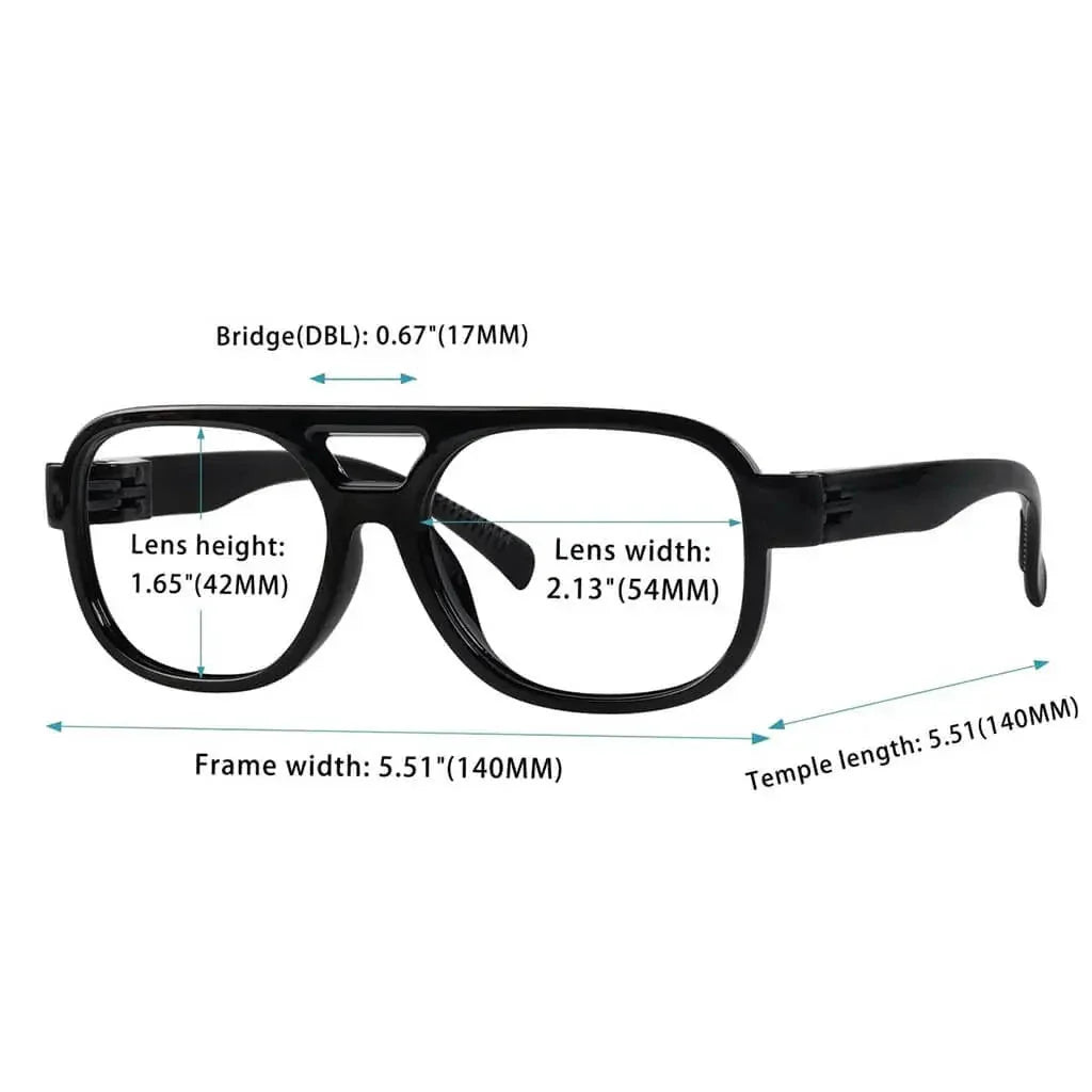 • Frame width: 5.51 inches (140mm), Lens width: 2.13 inches (54mm), Lens height: 1.65 inches (42mm), Bridge width: 0.67 inches (17mm), Temple length: 5.51 inches (140mm)