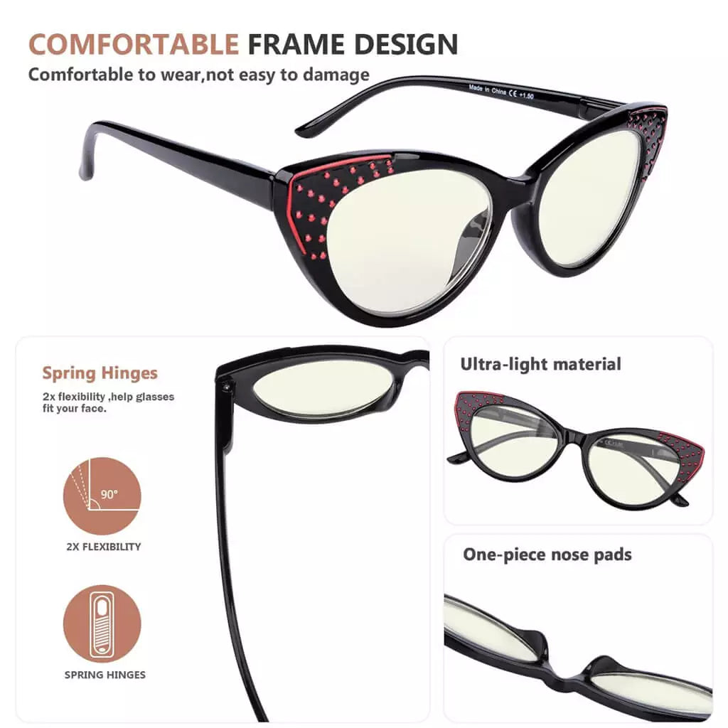 • Cat Eye Blue Light Blocking Reading Glasses for Women