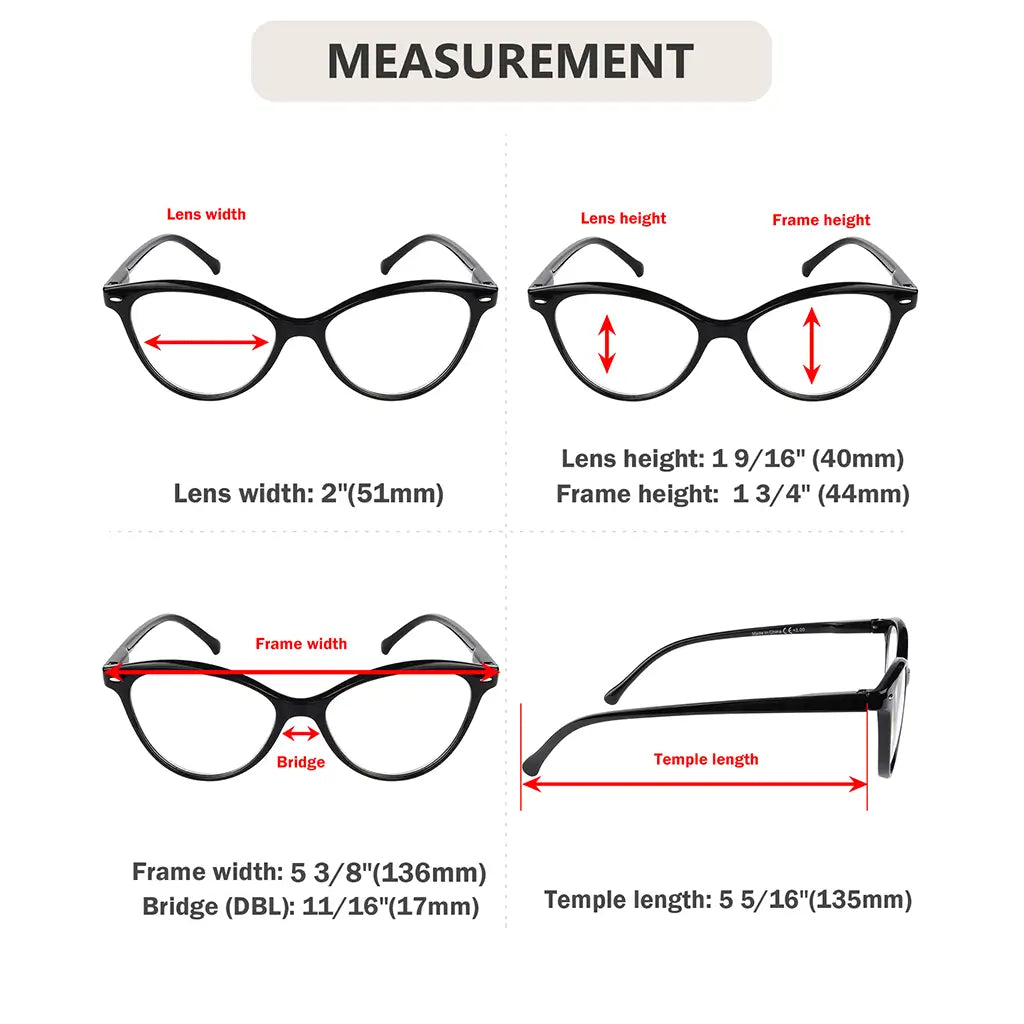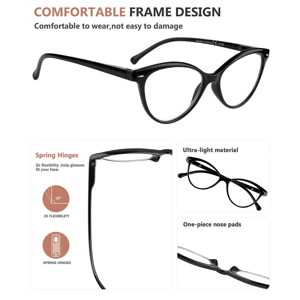 • Cat Eye Multifocus Blue Light Blocking Reading Glasses for Women