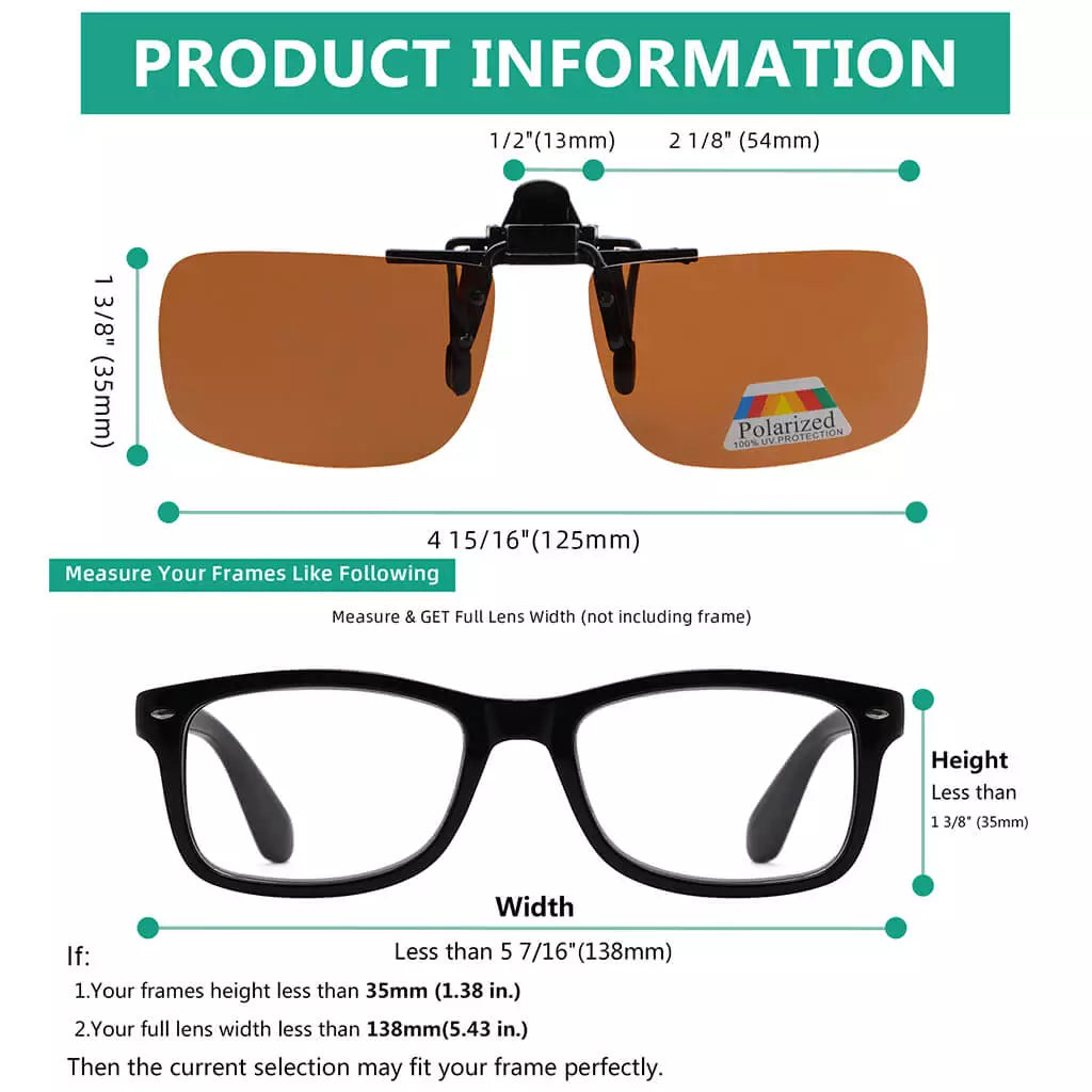 • Frame width: 4.92 inches (125mm), Lens width: 2.13 inches (54mm), Lens height: 1.38 inches (35mm), Bridge width: 0.51 inches (13mm)