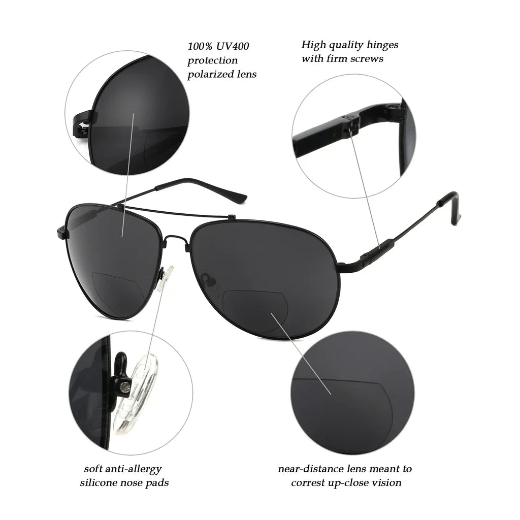 • Polarized Bifocal Sunglasses Pilot Wire Rim for Women Men