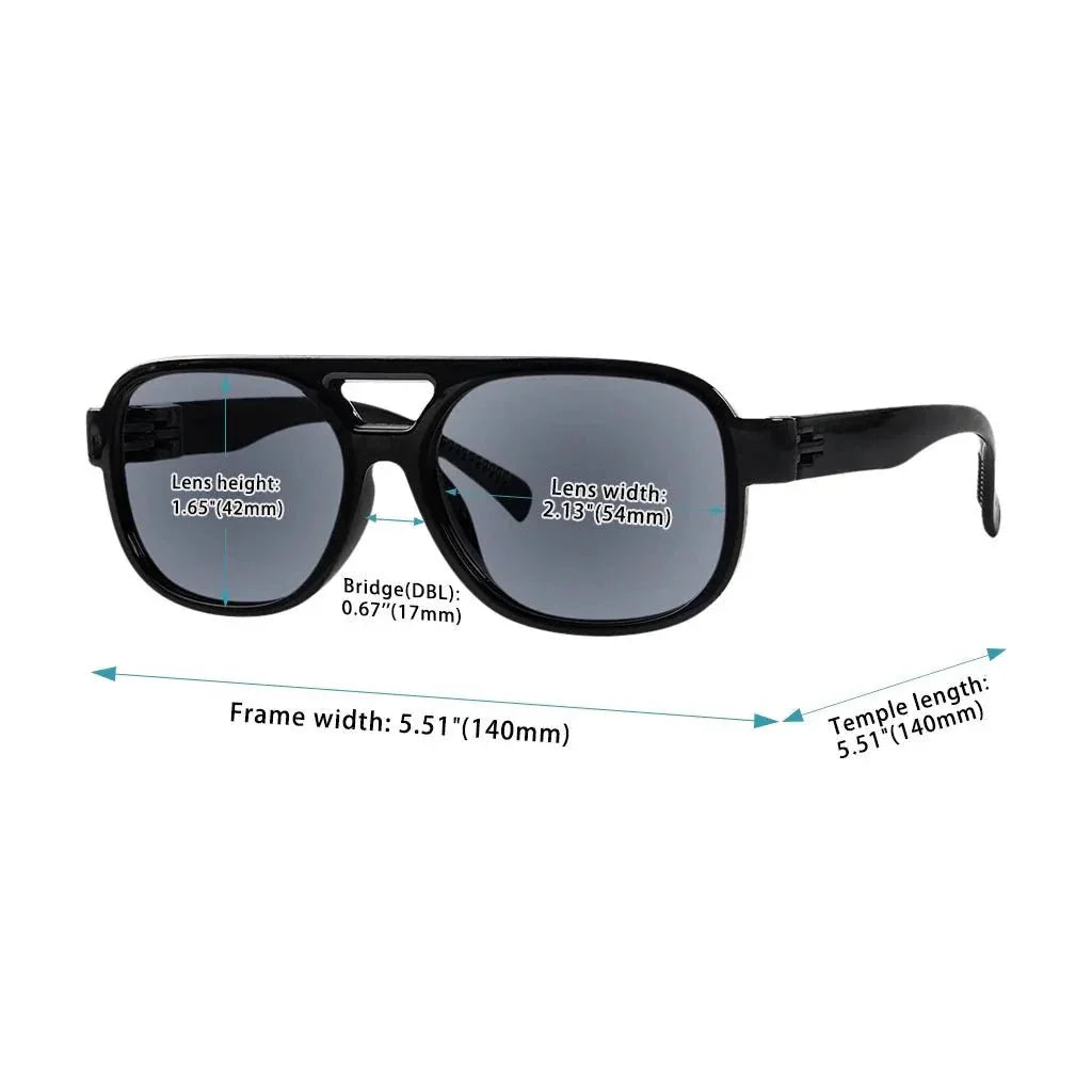 • Frame width: 5.51 inches (140mm), Lens width: 2.13 inches (54mm), Lens height: 1.65 inches (42mm), Bridge width: 0.67 inches (17mm), Temple length: 5.51 inches (140mm)