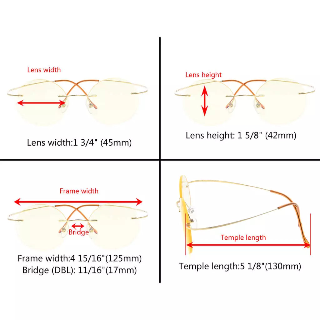 • Titanium Rimless Blue Light Blocking Glasses for Women Men