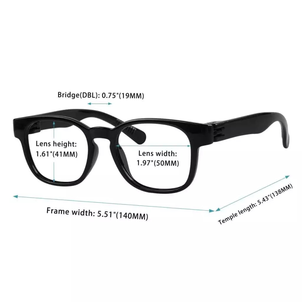 • Frame width: 5.51 inches (140mm), Lens width: 1.97 inches (50mm), Lens height: 1.61 inches (41mm), Bridge width: 0.75 inches (19mm), Temple length: 5.43 inches (138mm)