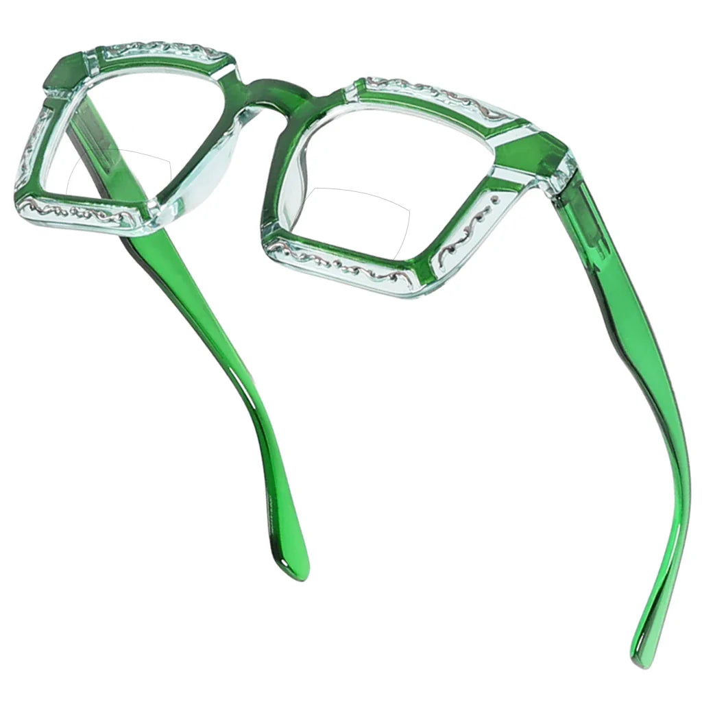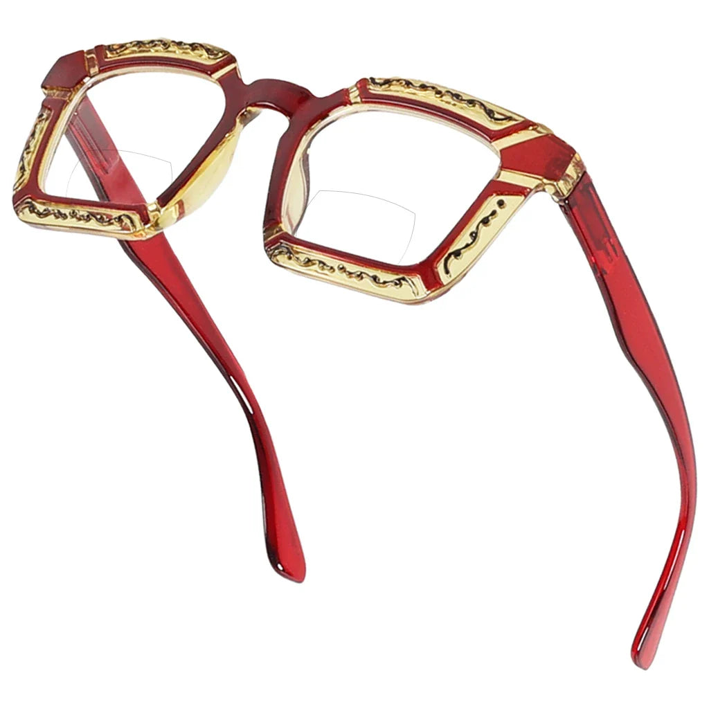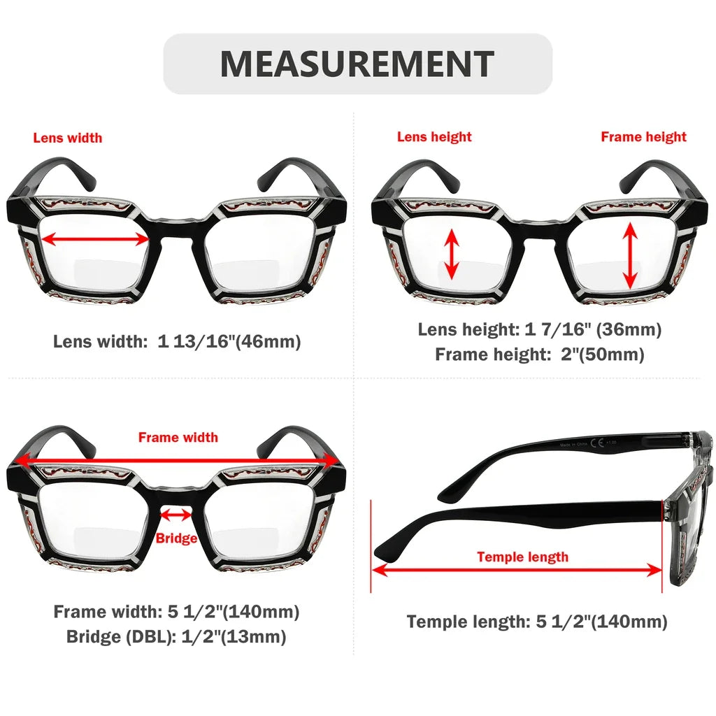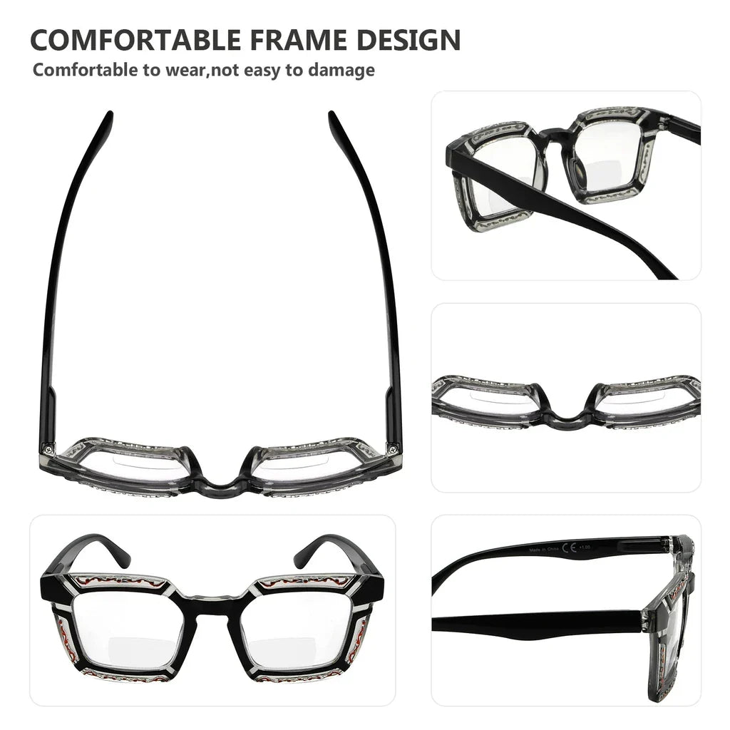 • Floral Pattern Design Square Bifocal Reading Glasses for Women