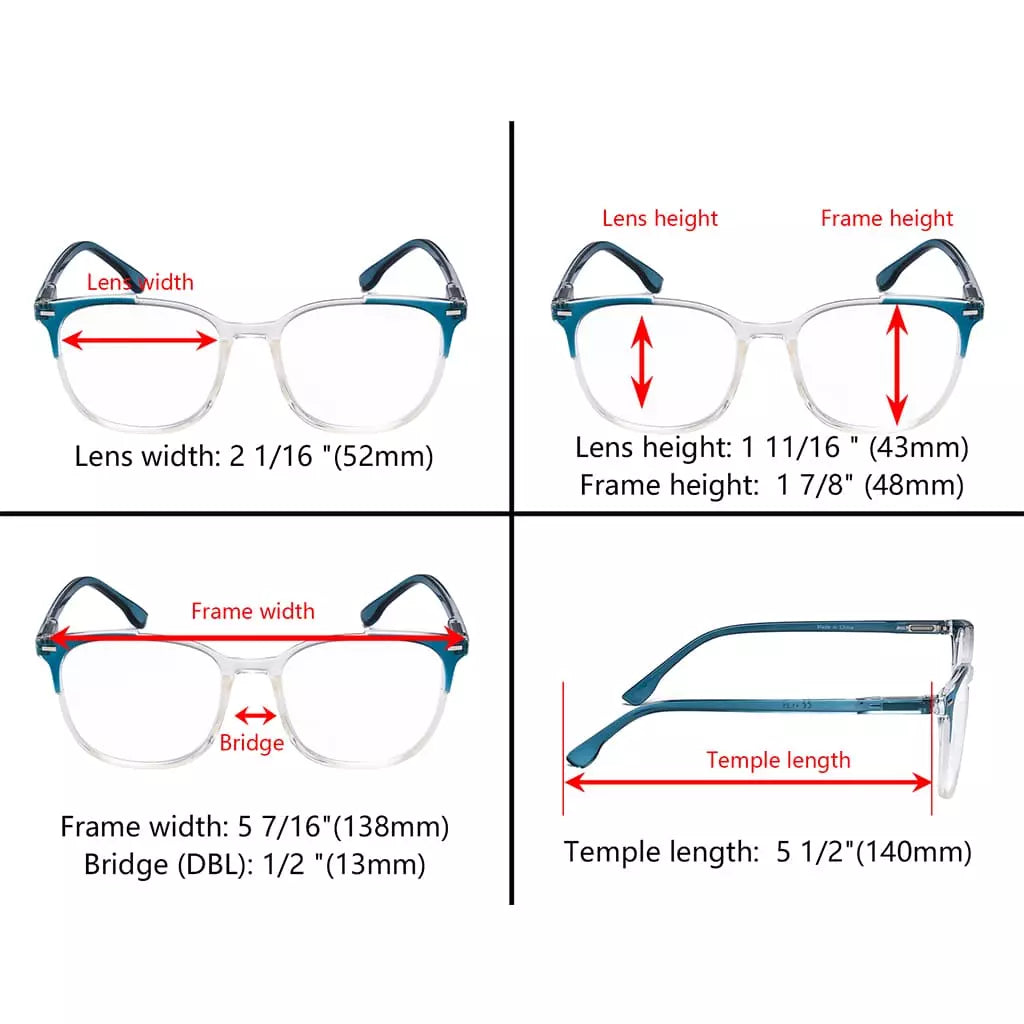 • Frame width about 5.43 inches (138mm), Lens width about 2.05 inches (52mm), Lens height about 1.69 inches (43mm), Bridge (DBL) about 0.51 inches (13mm), Temple length about 5.51 inches (140mm).