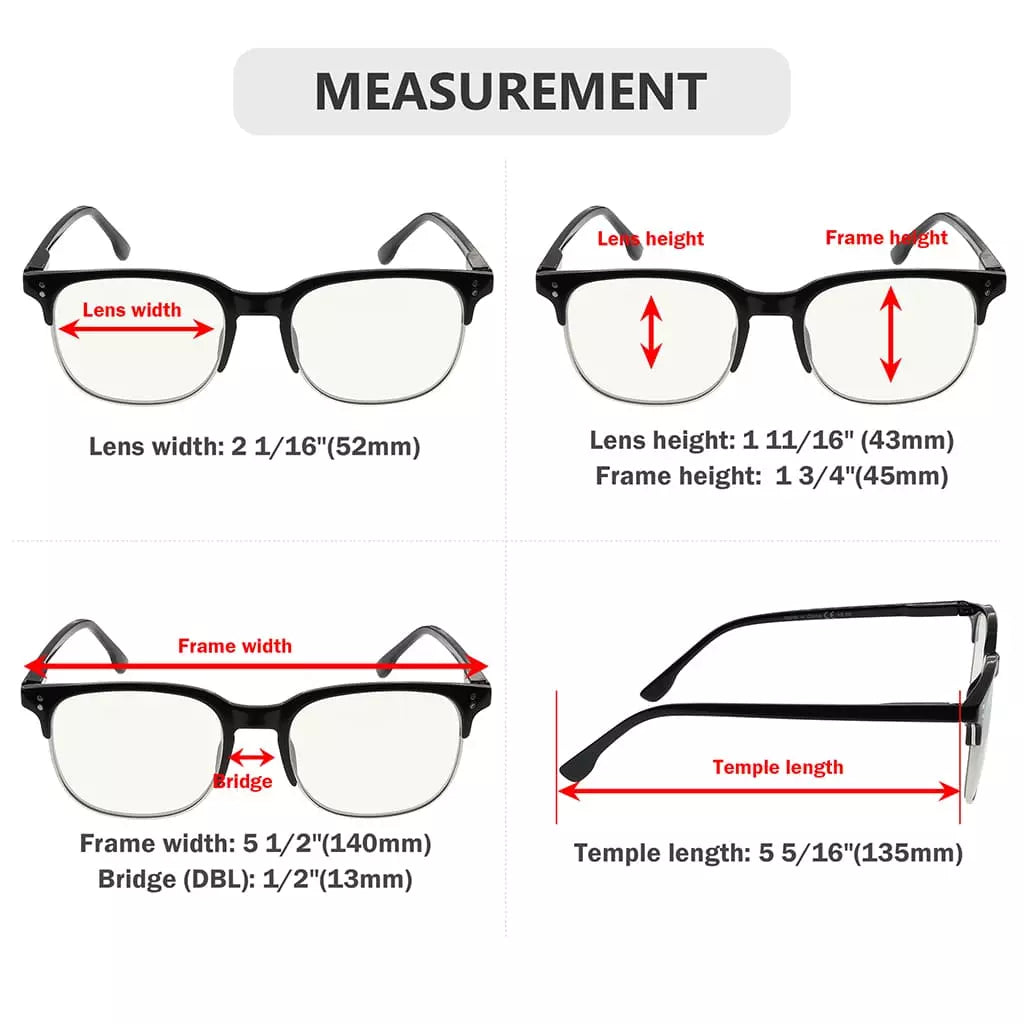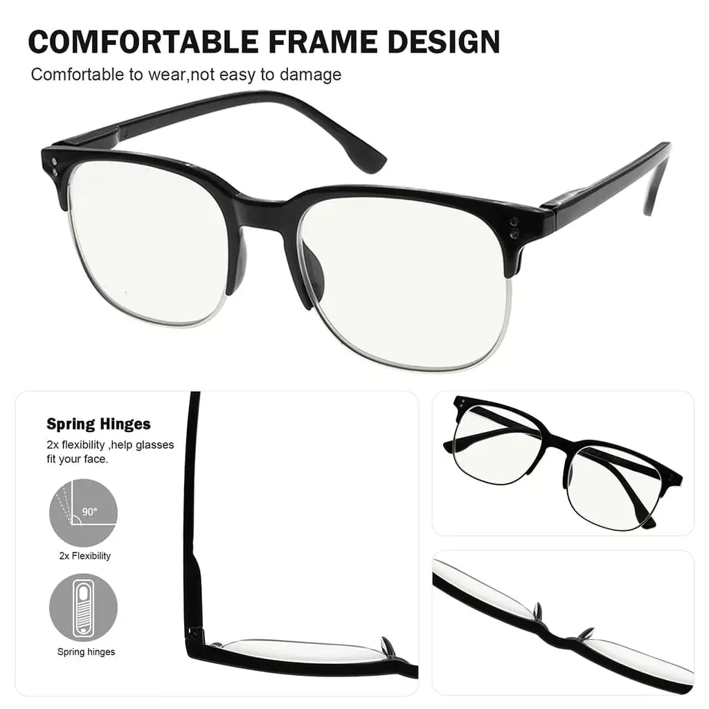 • Progressive Half Rim Blue Light Blocking Reading Glasses for Men