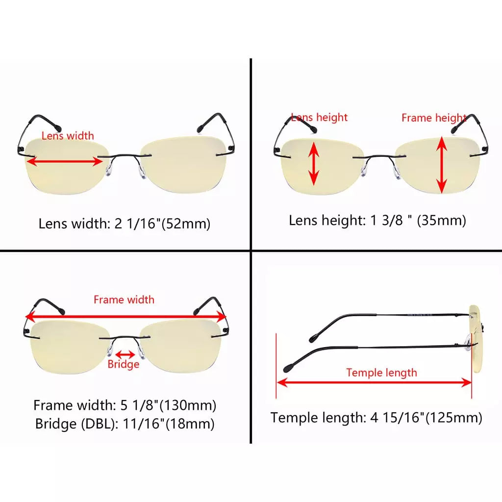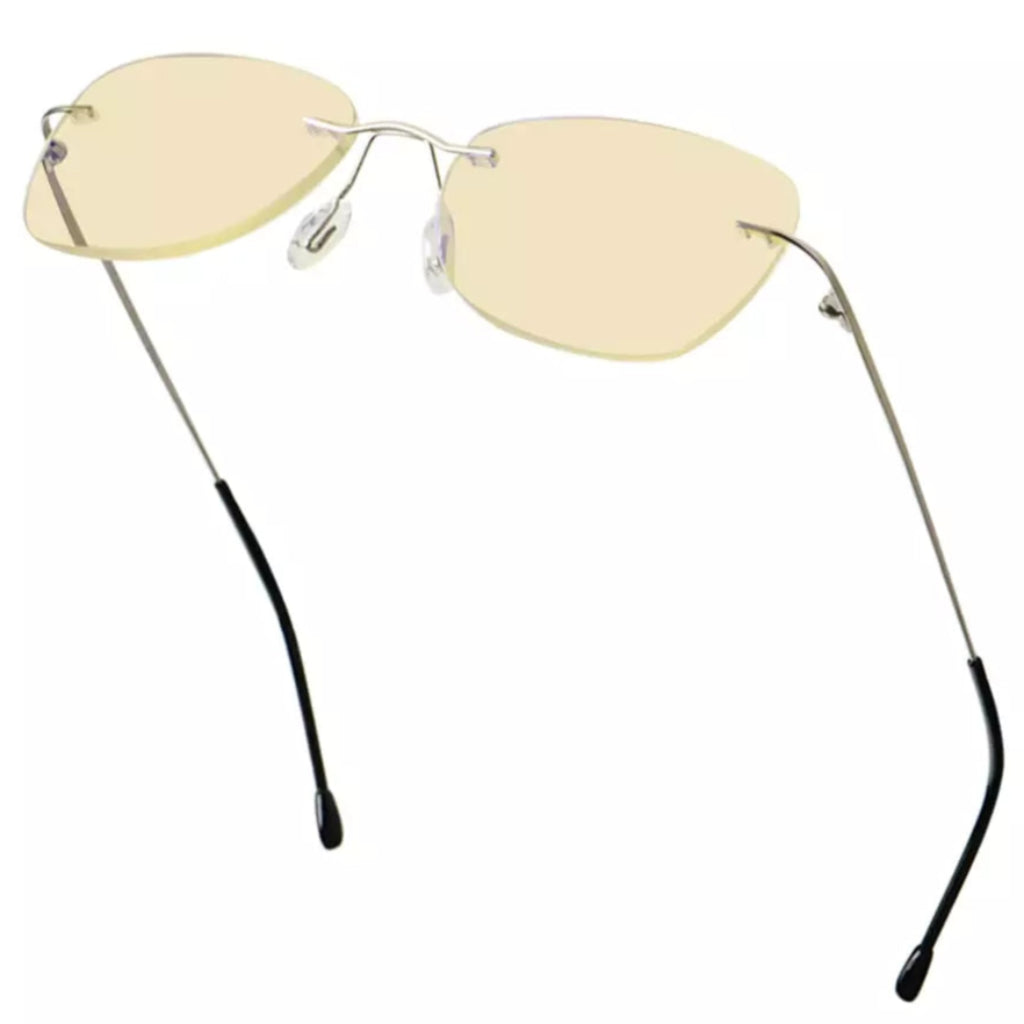 • Rimless Blue Light Blocking Glasses Yellow Tinted for Women Men