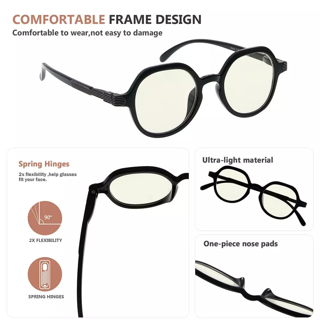 • Round Oval Small Blue Light Blocking Reading Glasses for Women
