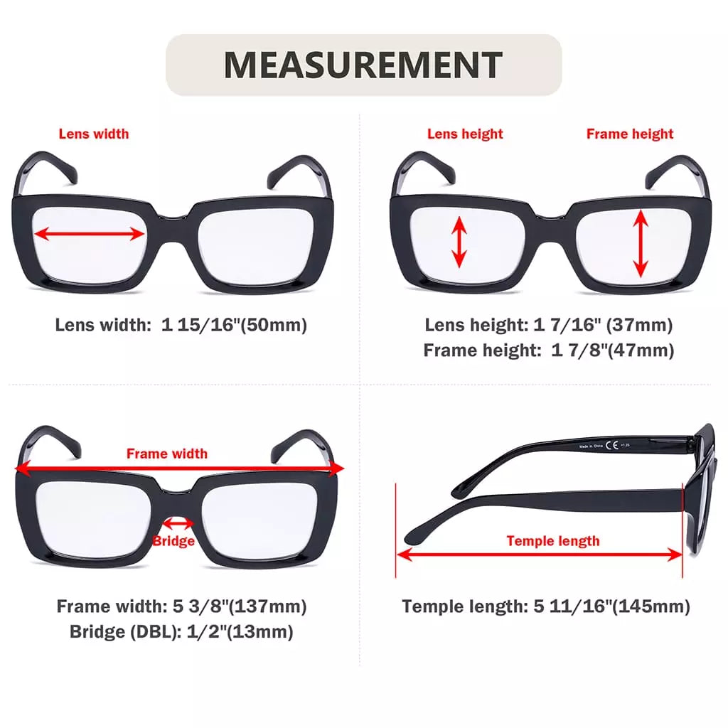 • Frame width about 5.39 inches (137mm), Lens width about 1.97 inches (50mm), Lens height about 1.46 inches (37mm), Bridge (DBL) about 0.51 inches (13mm), Temple length about 5.71 inches (145mm).