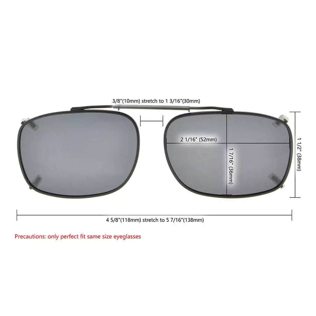 • Frame width about 4.65 inches (118mm) stretch to 5.43 inches (138mm), Lens width about 2.04 inches (52mm), Lens height about 1.42 inches (36mm), Bridge (DBL) about 0.39 inches (10mm) stretch to 0.18 inches (30mm)