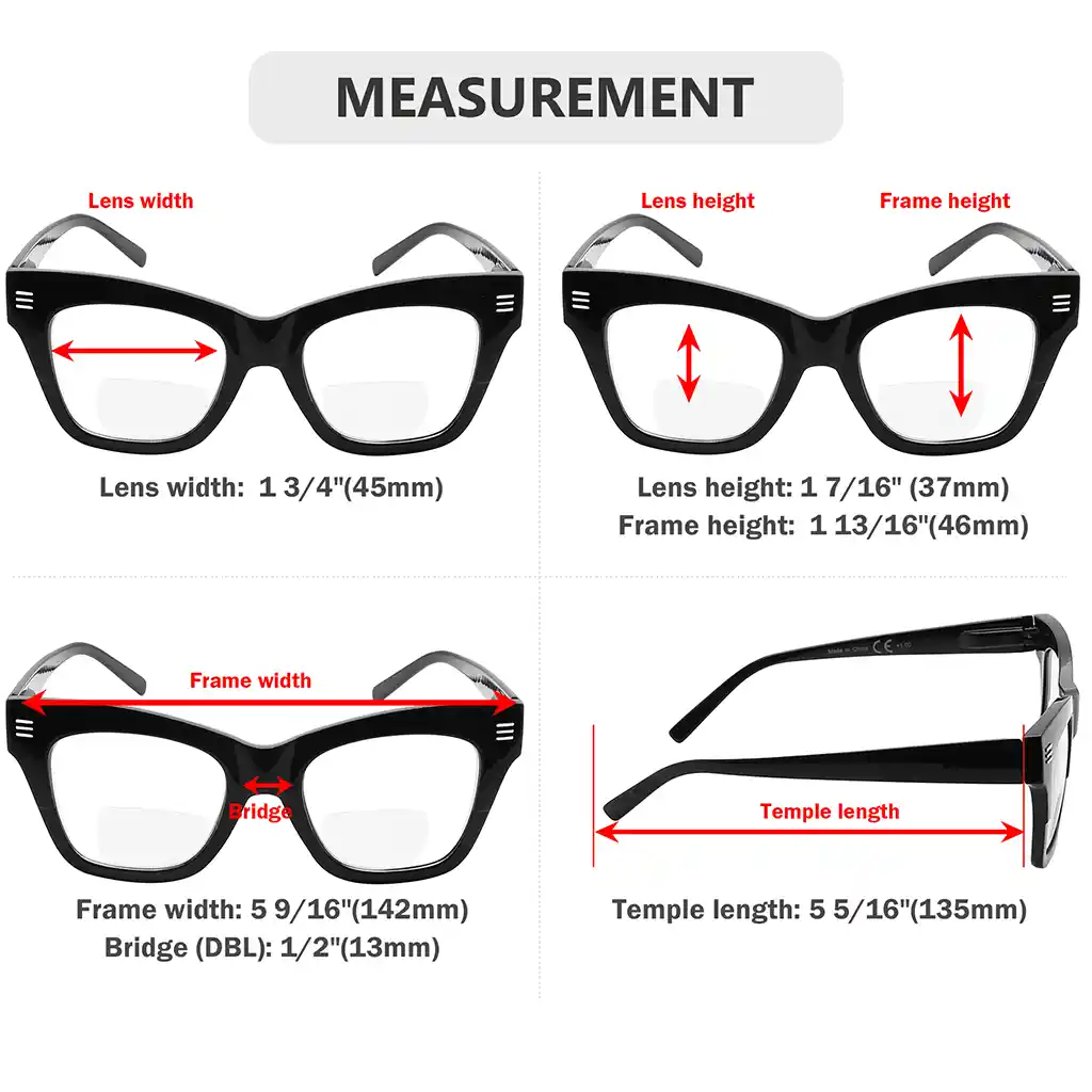 - EYEKEEPER BIFOCAL GLASSES - A crescent shape on the bottom part of the lenses have magnification, which is for reading and close-up work. And the other parts of the lenses have no magnification,which is for distance viewing.