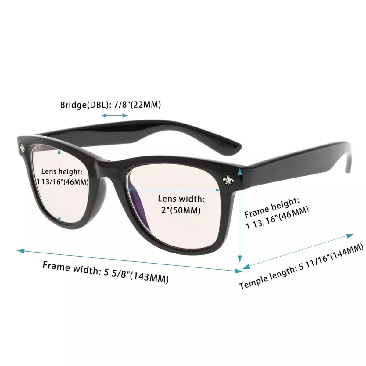 • Frame width: 5.63 inches (143mm), Lens width: 1.97 inches (50mm), Lens height: 1.81 inches (46mm), Bridge width: 0.87 inches (22mm), Temple length: 5.67 inches (144mm)