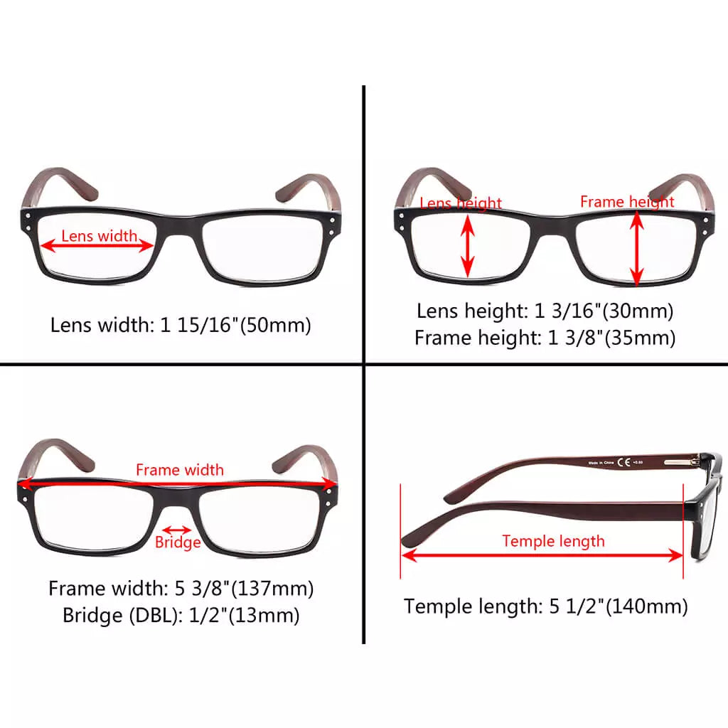 • Frame width: 5.39 inches (137mm), Lens width: 1.97 inches (50mm), Lens height: 1.18 inches (30mm), Bridge width: 0.51 inches (13mm), Temple length: 5.51 inches (140mm)