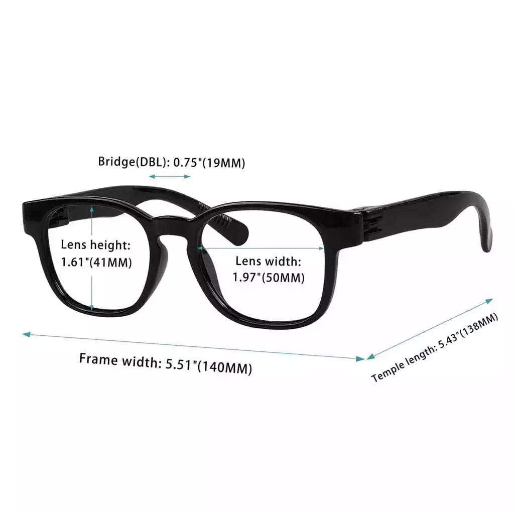 • Frame width: 5.51 inches (140mm), Lens width: 1.97 inches (50mm), Lens height: 1.61 inches (41mm), Bridge (DBL): 0.75 inches (19mm), Temple length: 5.43 inches (138mm).