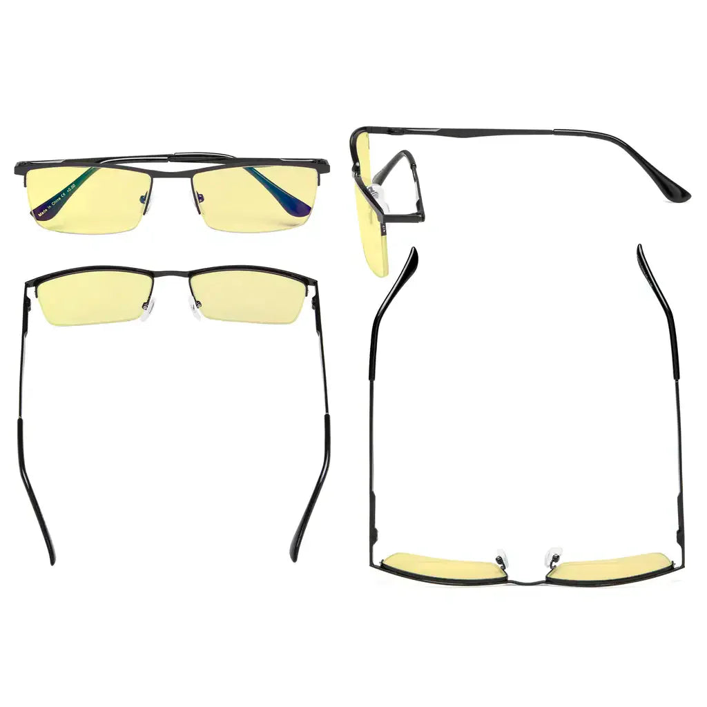 • Half-rim Blue Light Eyeglasses Yellow Tinted For Men