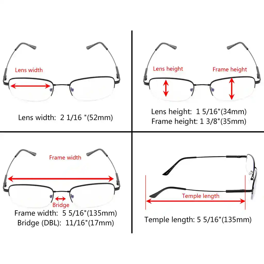 • Half-Rim Multifocus Reading Glasses Titanium For Women Men