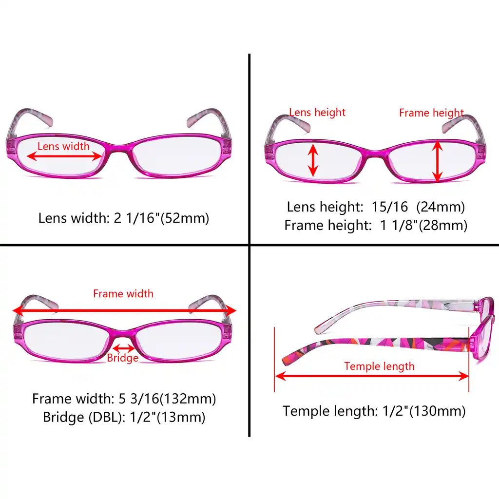 • Frame width:5.20 inches (132mm), Lens width:2.05 inches (52mm), Lens height:0.94 inches (24mm), Bridge(DBL):0.51 inches (13mm), Temple length:5.12 inches (130mm).