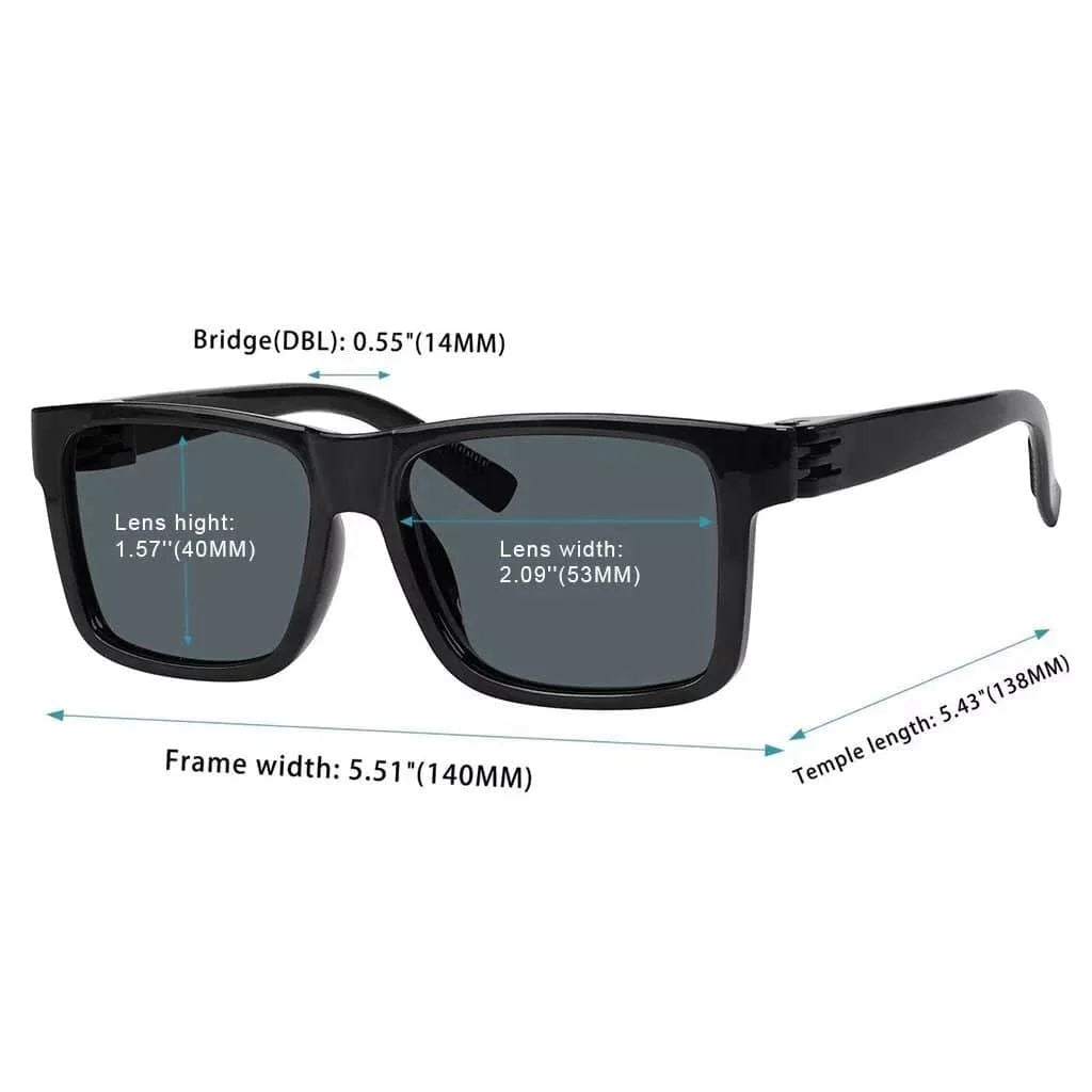 • Frame width: 5.51 inches (140mm), Lens width: 2.09 inches (53mm), Lens height: 1.57 inches (40mm), Bridge width: 0.55 inches (14mm), Temple length: 5.43 inches (138mm)