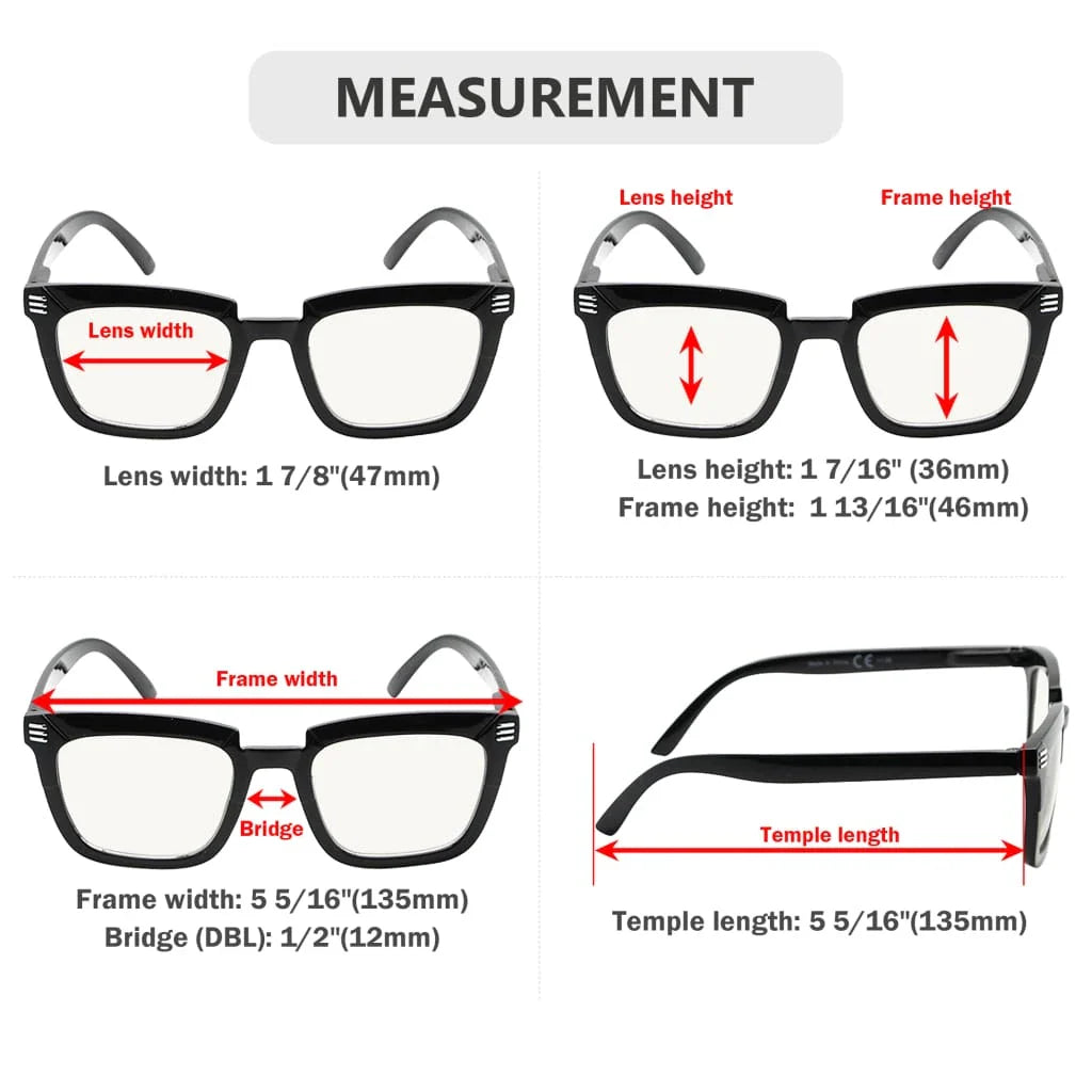 • Frame width: 5.31 inches (135mm), Lens width: 1.85 inches (47mm), Lens height: 1.42 inches (36mm), Bridge width: 0.47 inches (12mm), Temple length: 5.31 inches (135mm)