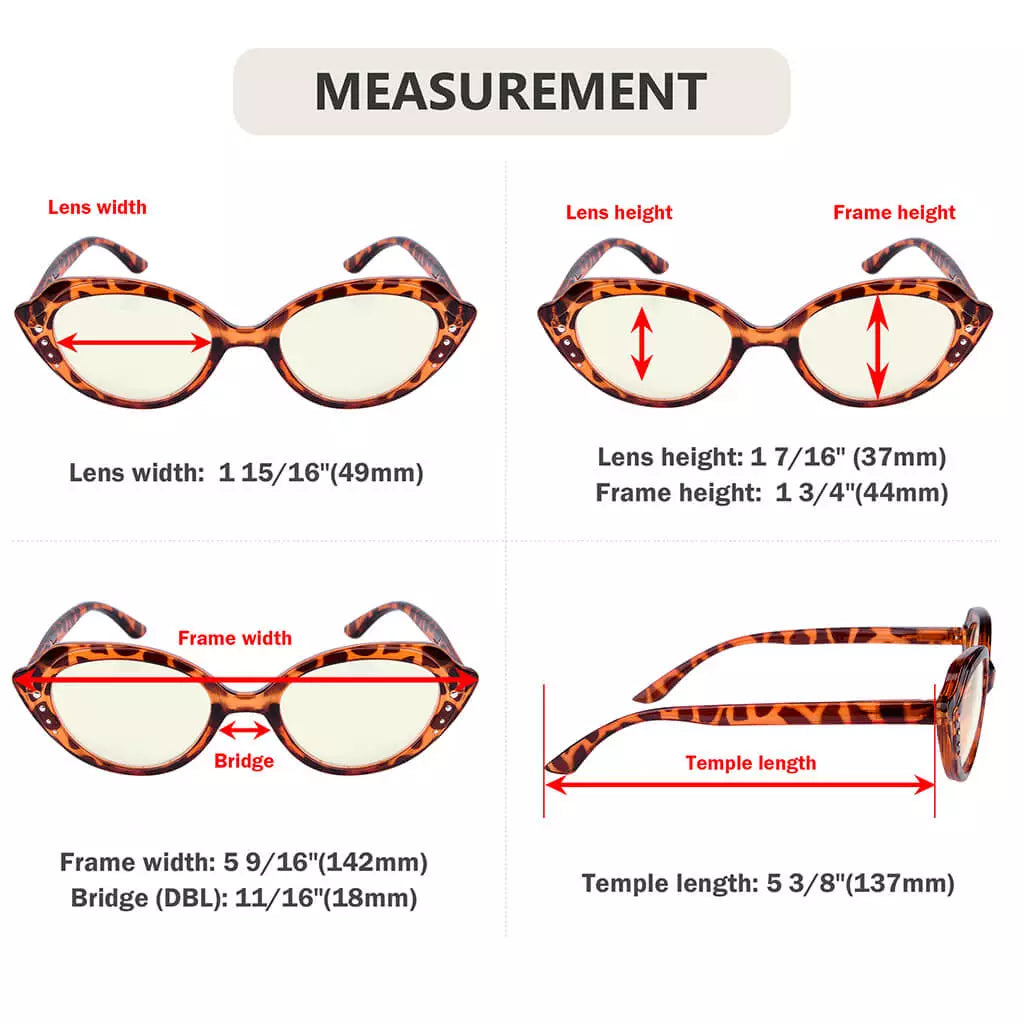 • Frame width: 5.59 inches (142mm), Lens width: 1.93 inches (49mm), Lens height: 1.46 inches (37mm), Bridge width: 0.71 inches (18mm), Temple length: 5.39 inches (137mm)