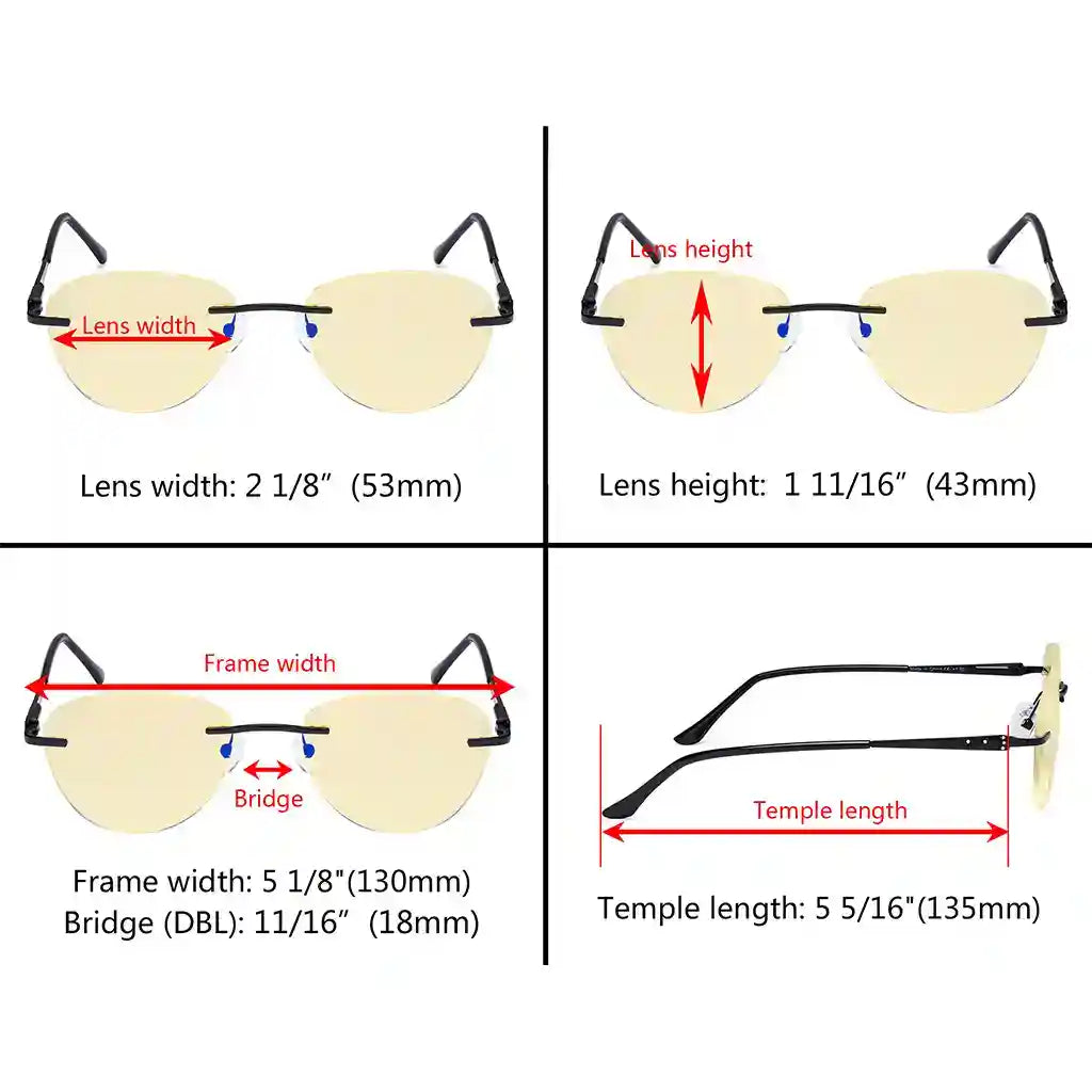 - Frame width:5.59 inches (142mm), Lens width:2.17 inches (55mm), Lens height:1.46 inches (37mm), Bridge(DBL):0.51 inches (13mm), Temple length:5.24 inches (133mm).