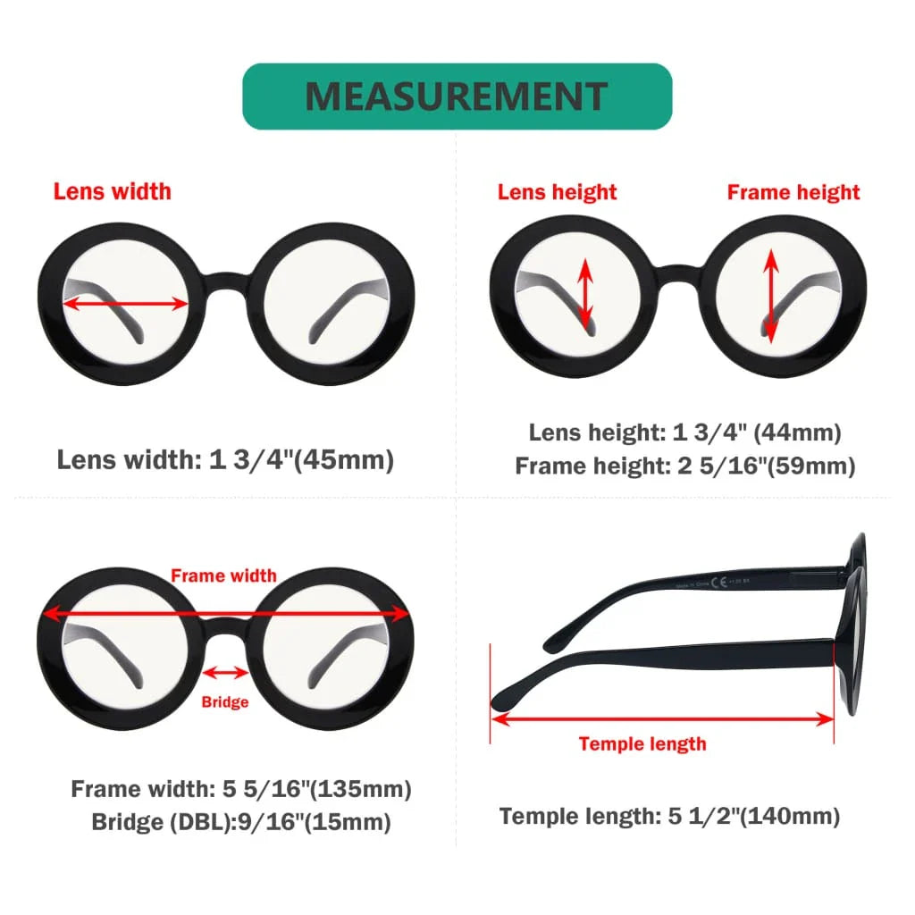 • Frame width: 5.31 inches (135mm), Lens width: 1.77 inches (45mm), Lens height: 1.73 inches (44mm), Bridge width: 0.59 inches (15mm), Temple length: 5.51 inches (140mm)