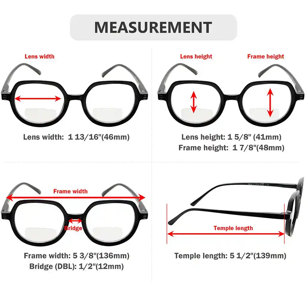 • Frame width: 5.35 inches (136mm), Lens width:1.81 inches (46mm), Lens height: 1.61 inches (41mm), Bridge(DBL): 0.47 inches (12mm), Temple length: 5.47 inches (139mm)