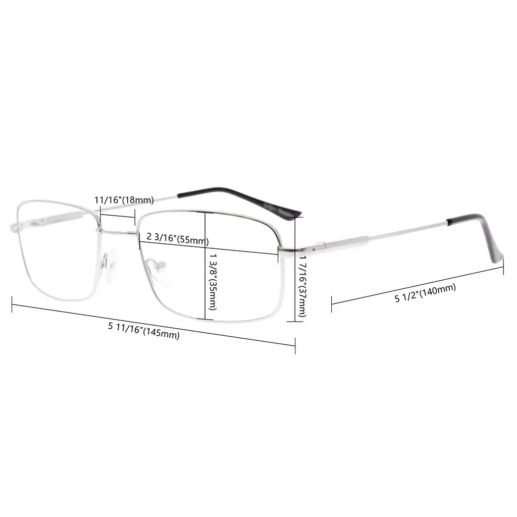 • Frame width: 5.71 inches (145mm), Lens width: 2.17 inches (55mm), Lens height: 1.38 inches (35mm), Bridge width: 0.71 inches (18mm), Temple length: 5.51 inches (140mm)