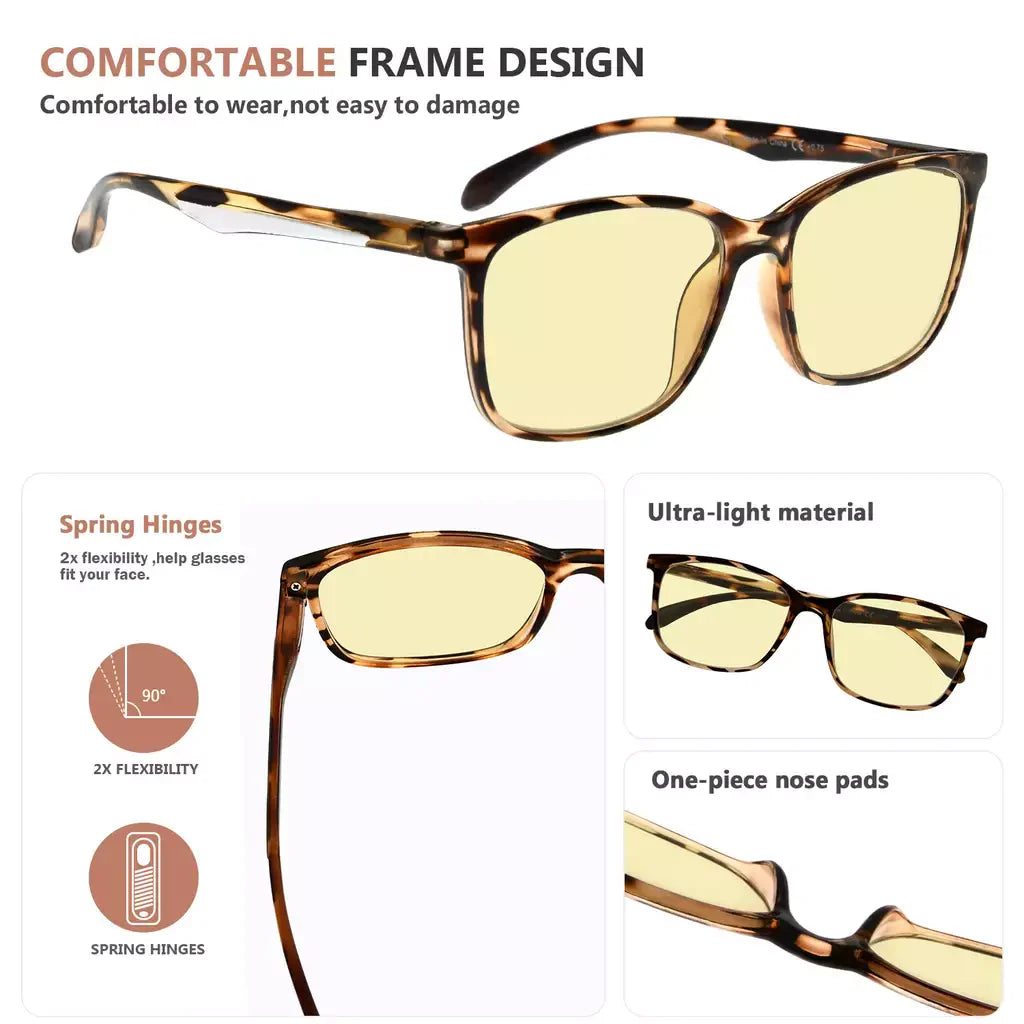 • Yellow Tinted Blue Light Blocking Eyeglasses For Women Men